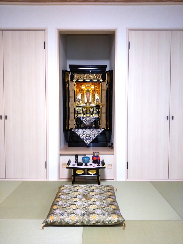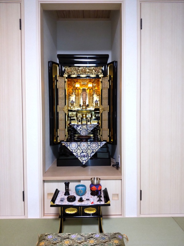 遠賀郡岡垣町のお客様で宗旨は浄土真宗本願寺派です。以前より何度か足をお運び頂きモダン仏壇や唐木仏壇など見学され最終的に金仏壇にされました。